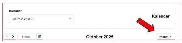 Die Ansicht des Kalenders kann verändert werden:Weiter unten einfach auf die Ansichts-Auswahl "Monat" klicken, dann sind verschiedene Ansichten wählbar.